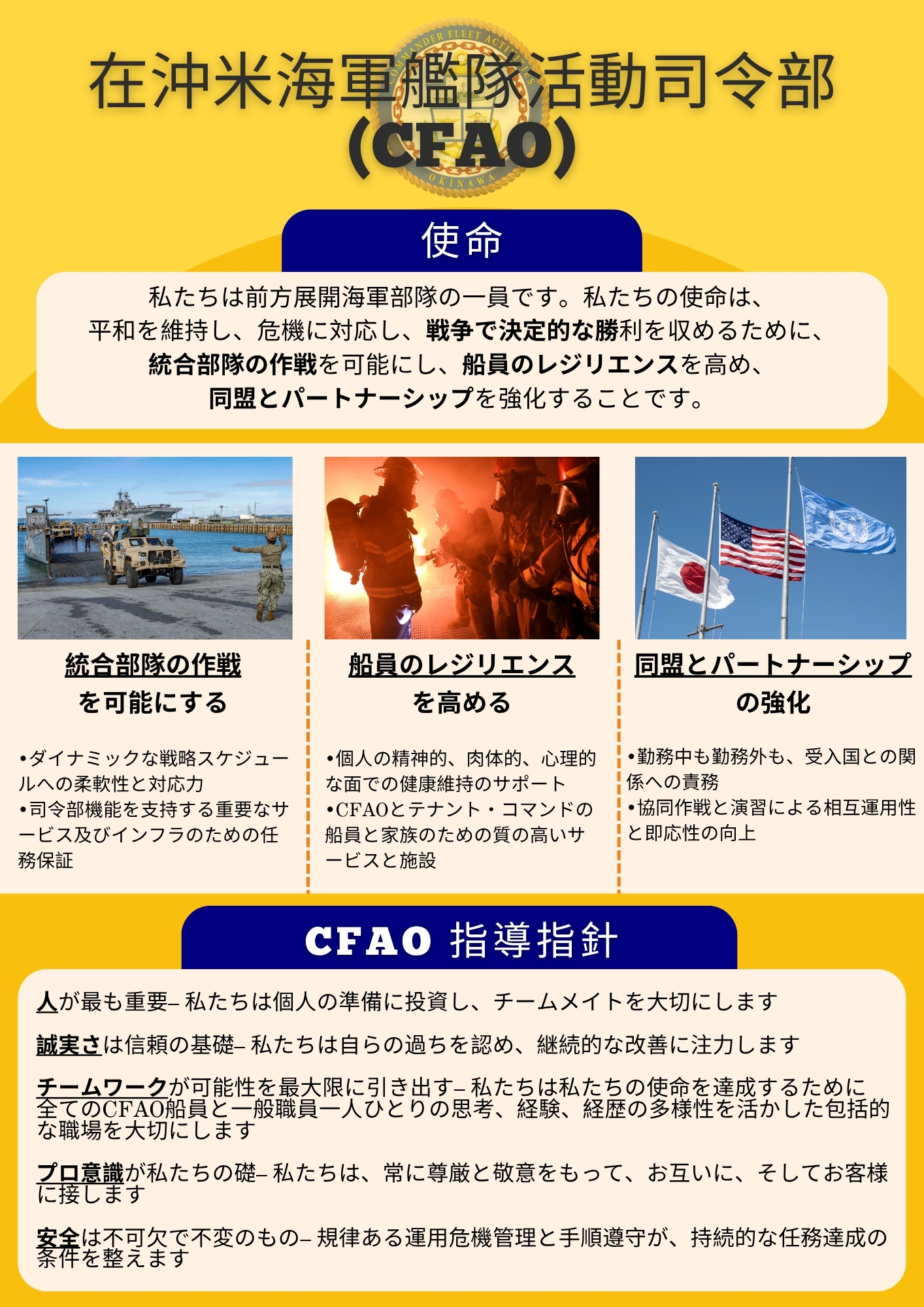 Click the images below to learn more about the CFAO mission and guiding principles in both English and Japanese.