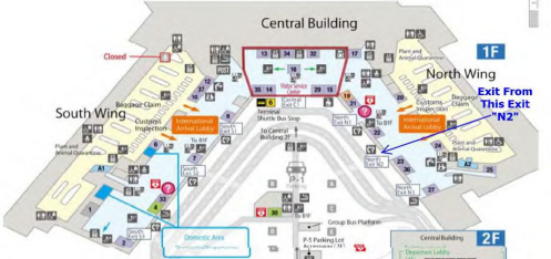 Narita International Airport – Terminal 1 (NRT T-1): Personnel arriving at the South Wing of the Terminal will need to head to the North Wing.