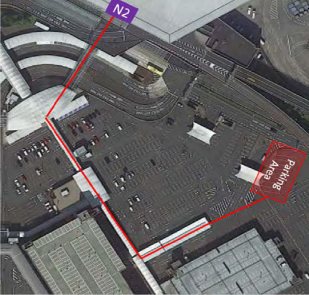 Exit from “N2” to cross the street to the parking lot where the shuttle will be waiting.