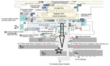 Haneda International Airport – Terminal 3 (HND): Personnel arriving will need to use the elevator marked for “Chartered Bus”.